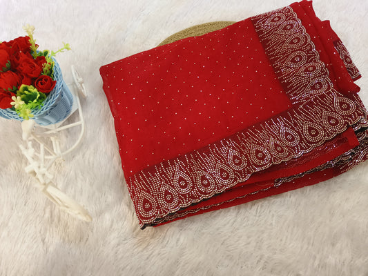 Red Stone Work Crush Fabric Saree