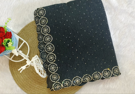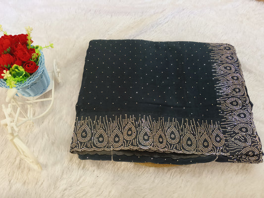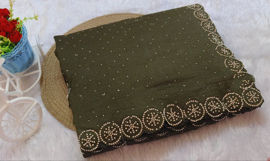 Dark Green Stone Work Crush Fabric Saree
