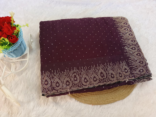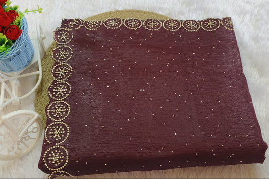 Brown Stone Work Crush Fabric Saree