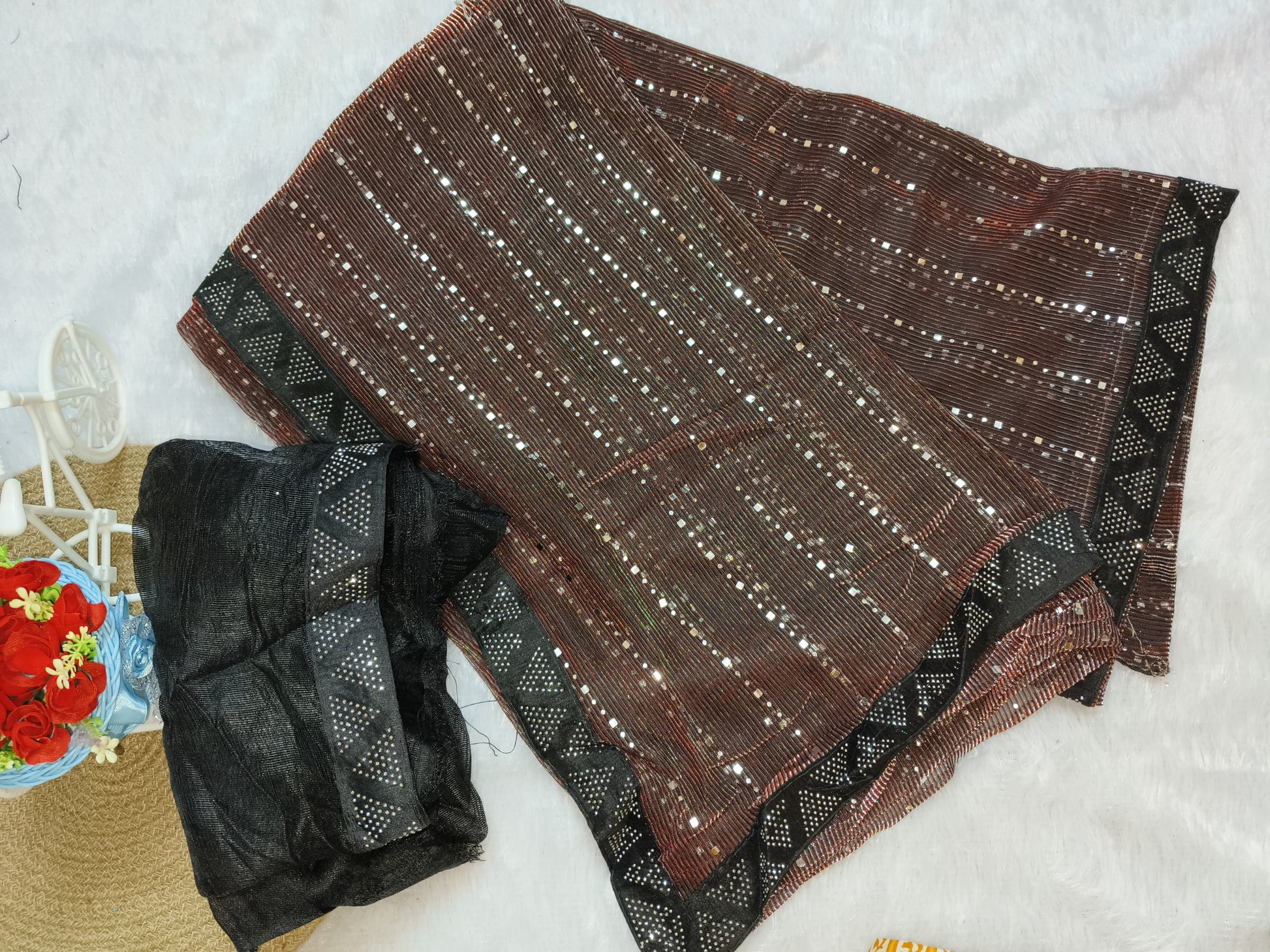 Experience luxury and comfort with our Maroon Color Sequence Saree. Made from lightweight and stretchable material, this saree is perfect for night functions and parties. Its elegant Maroon color is complemented by a stunning black stone lace, making you stand out and shine. Upgrade your wardrobe with this exquisite saree today!