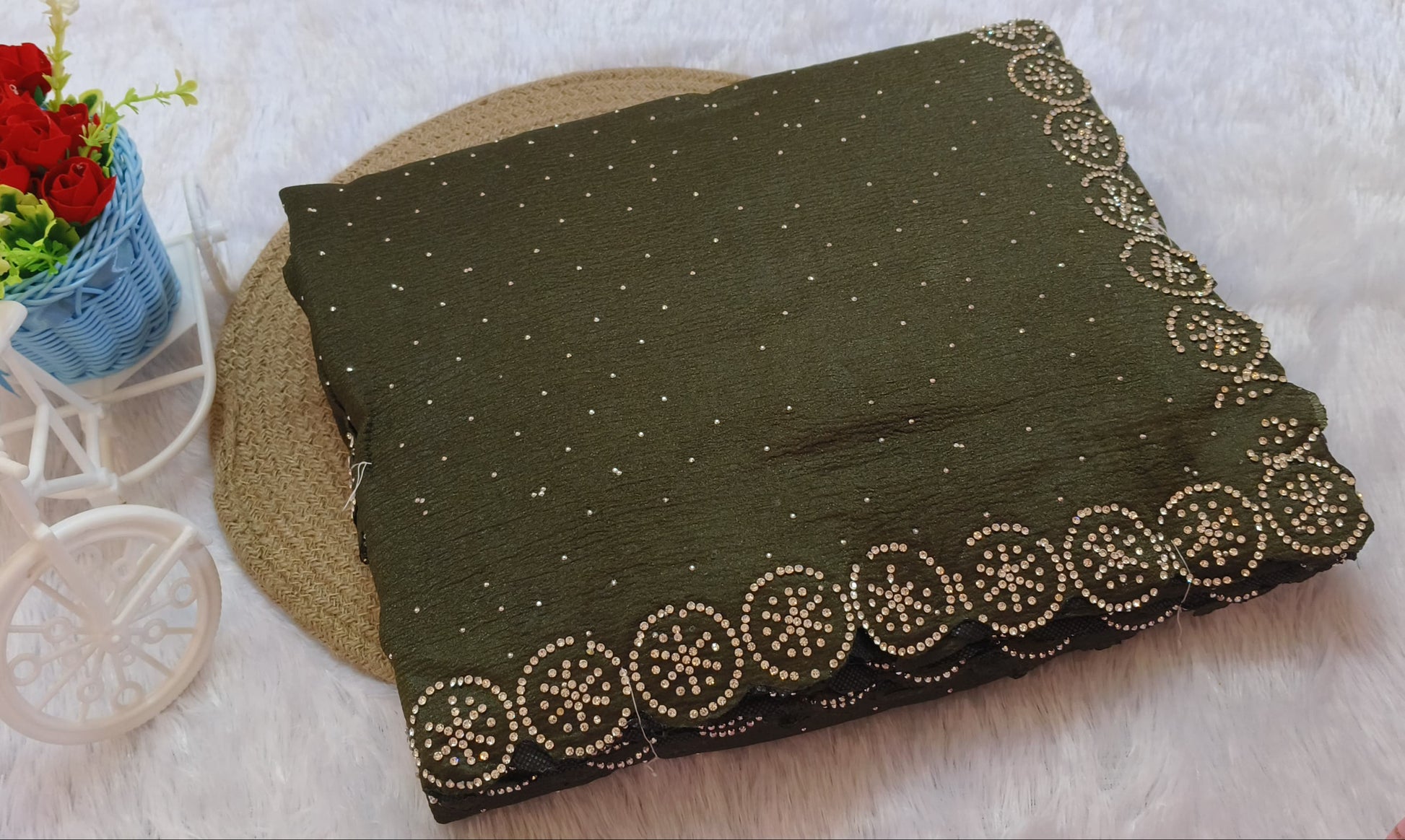 Green Stone Work Crush Fabric Saree