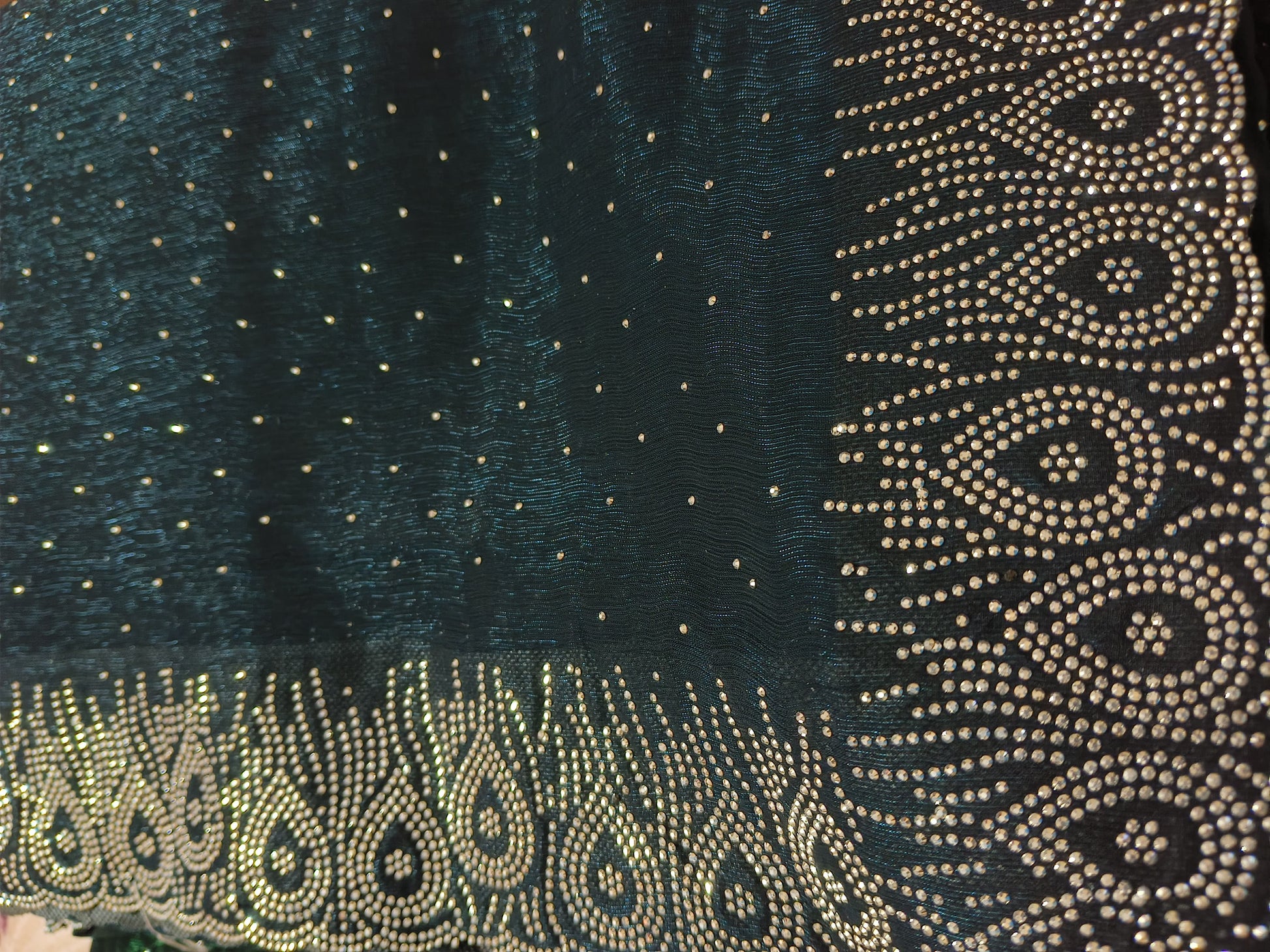 This Tale Blue Georgette Embellished Saree offers a stunning Bollywood style with a unique blend of traditional design. The self design pattern is embellished with stones, adding a touch of elegance. The silver border completes the look, making it a perfect choice for any occasion.