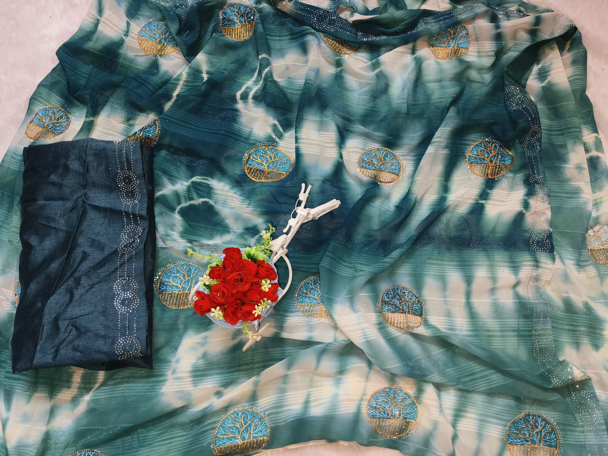 Embroidery Teal Blue Georgette saree