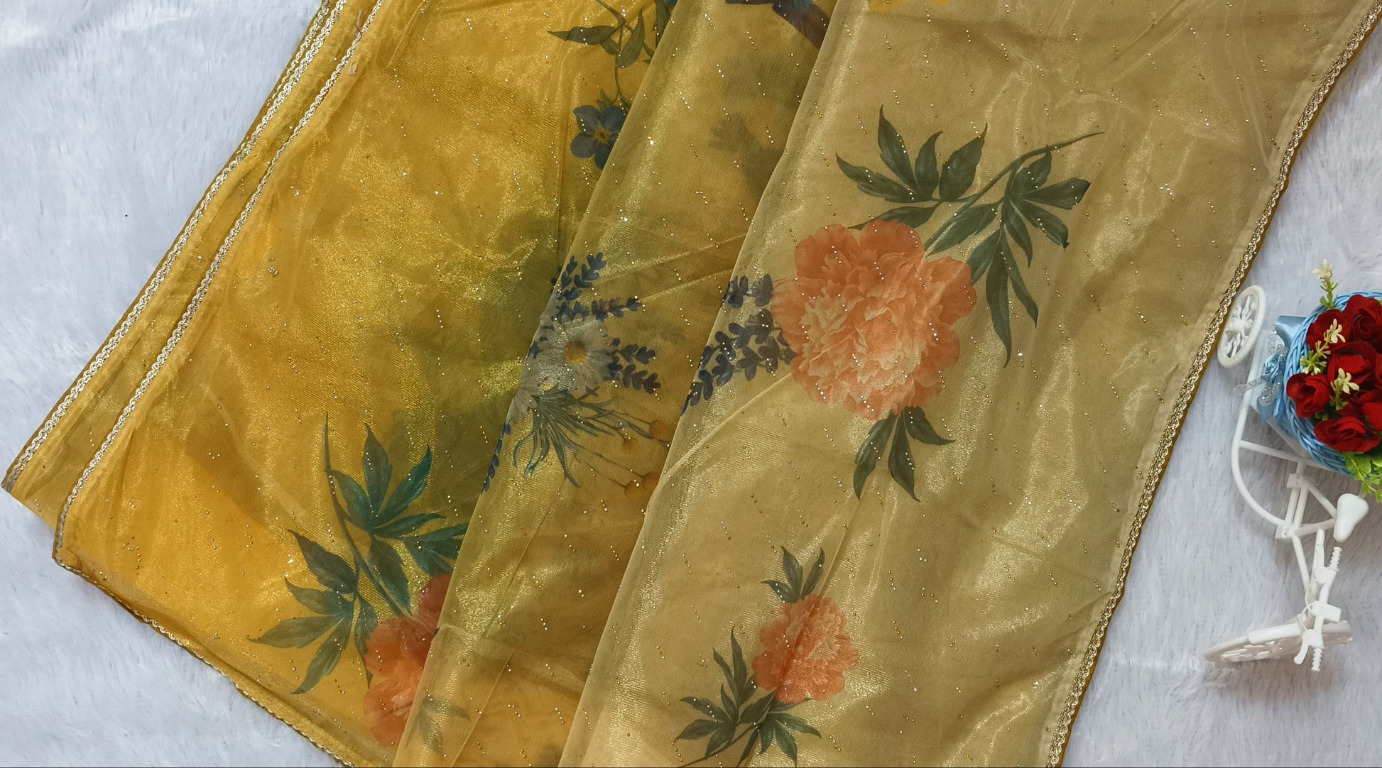 Yellow Digital Print Organza Saree